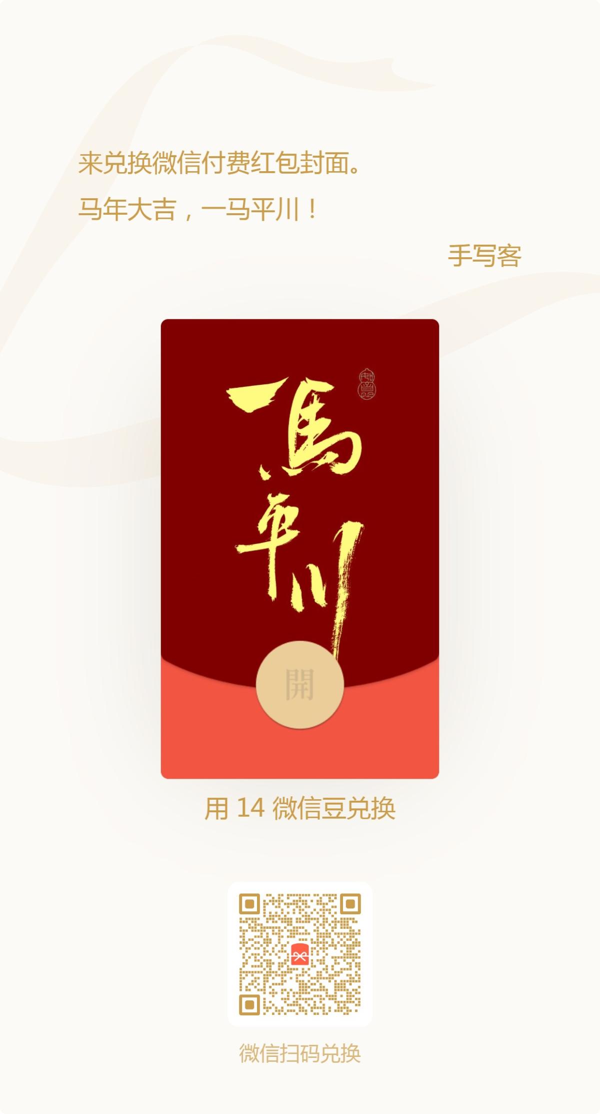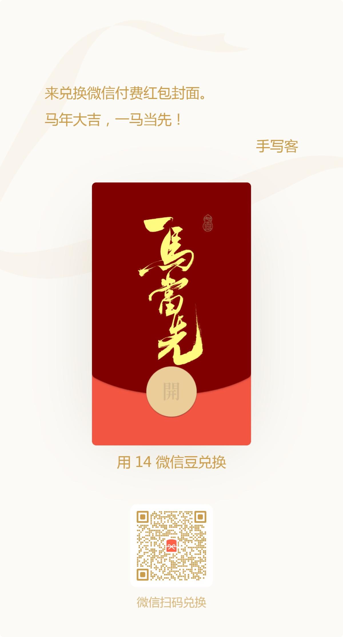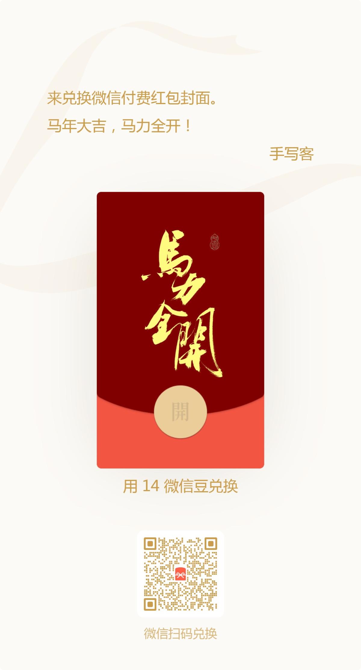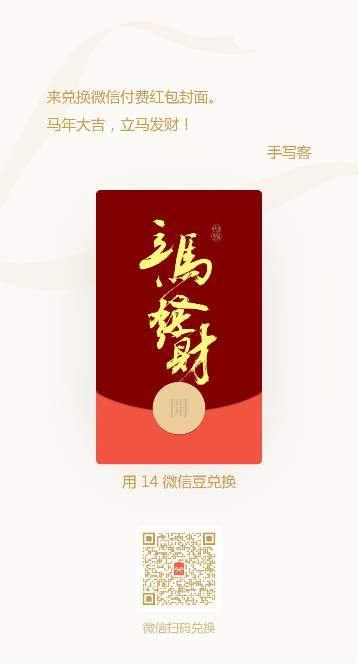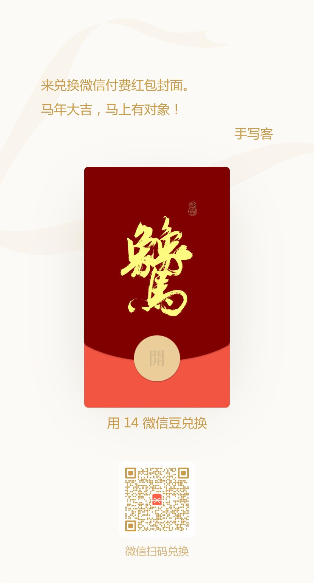 手写马年吉语红包封面