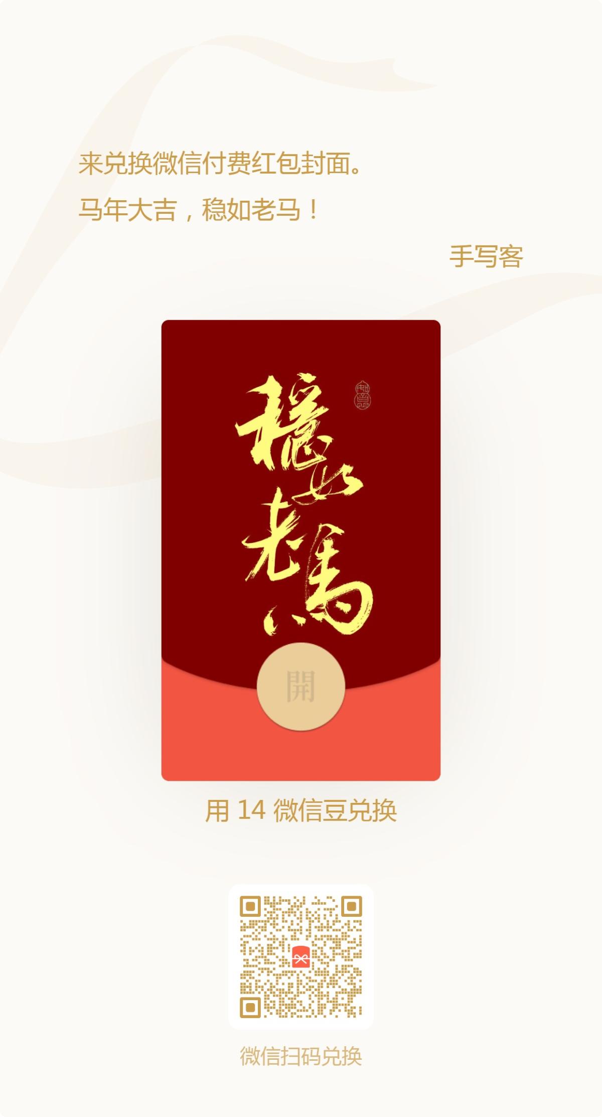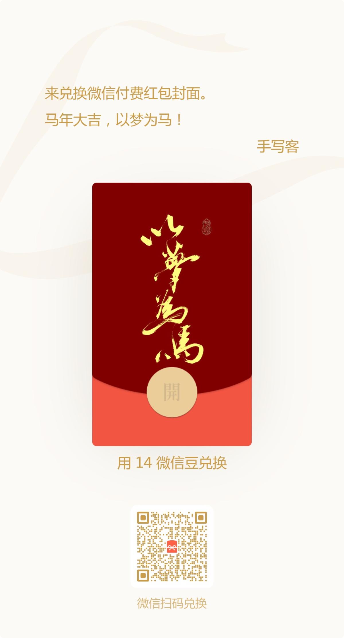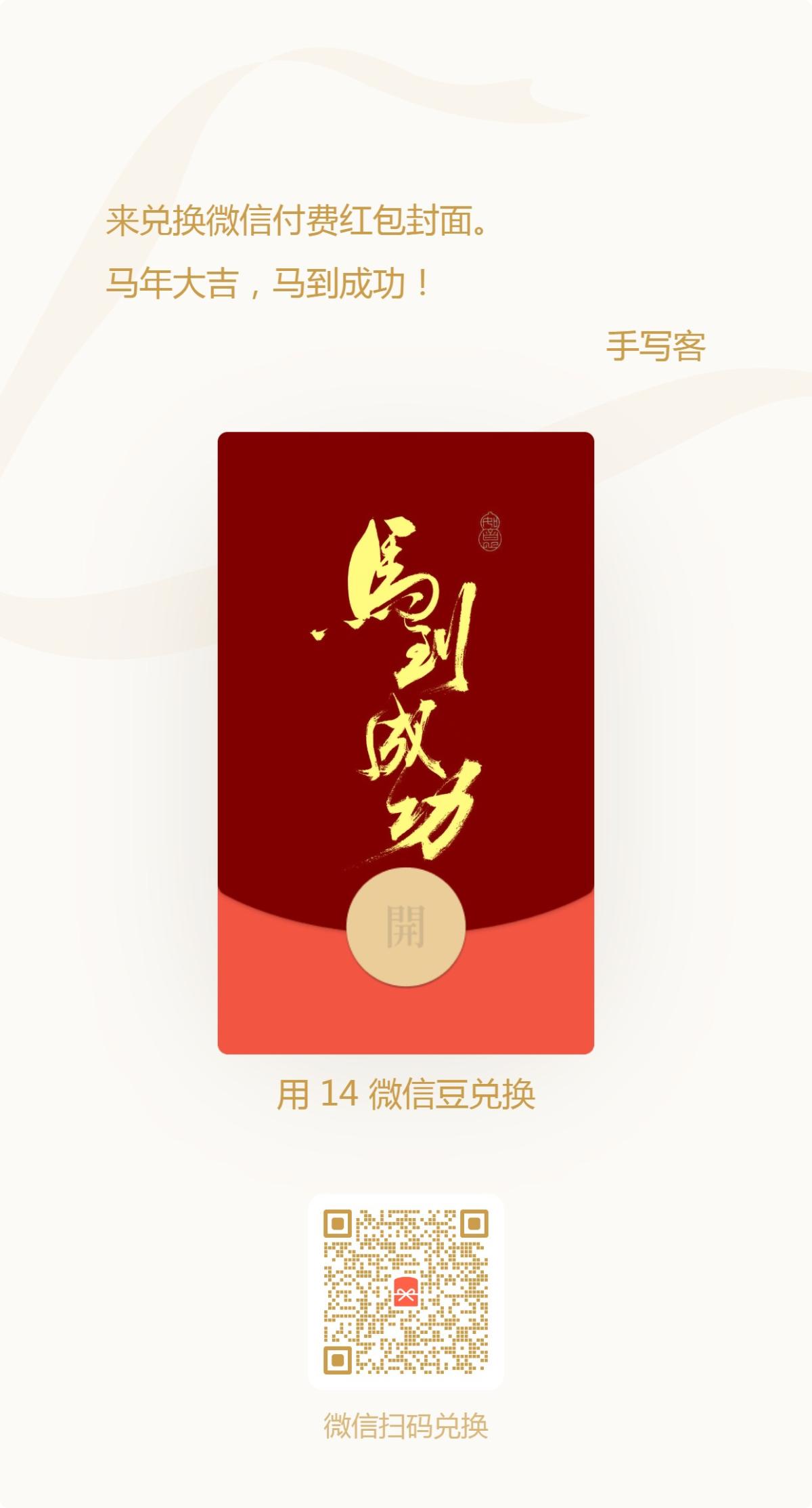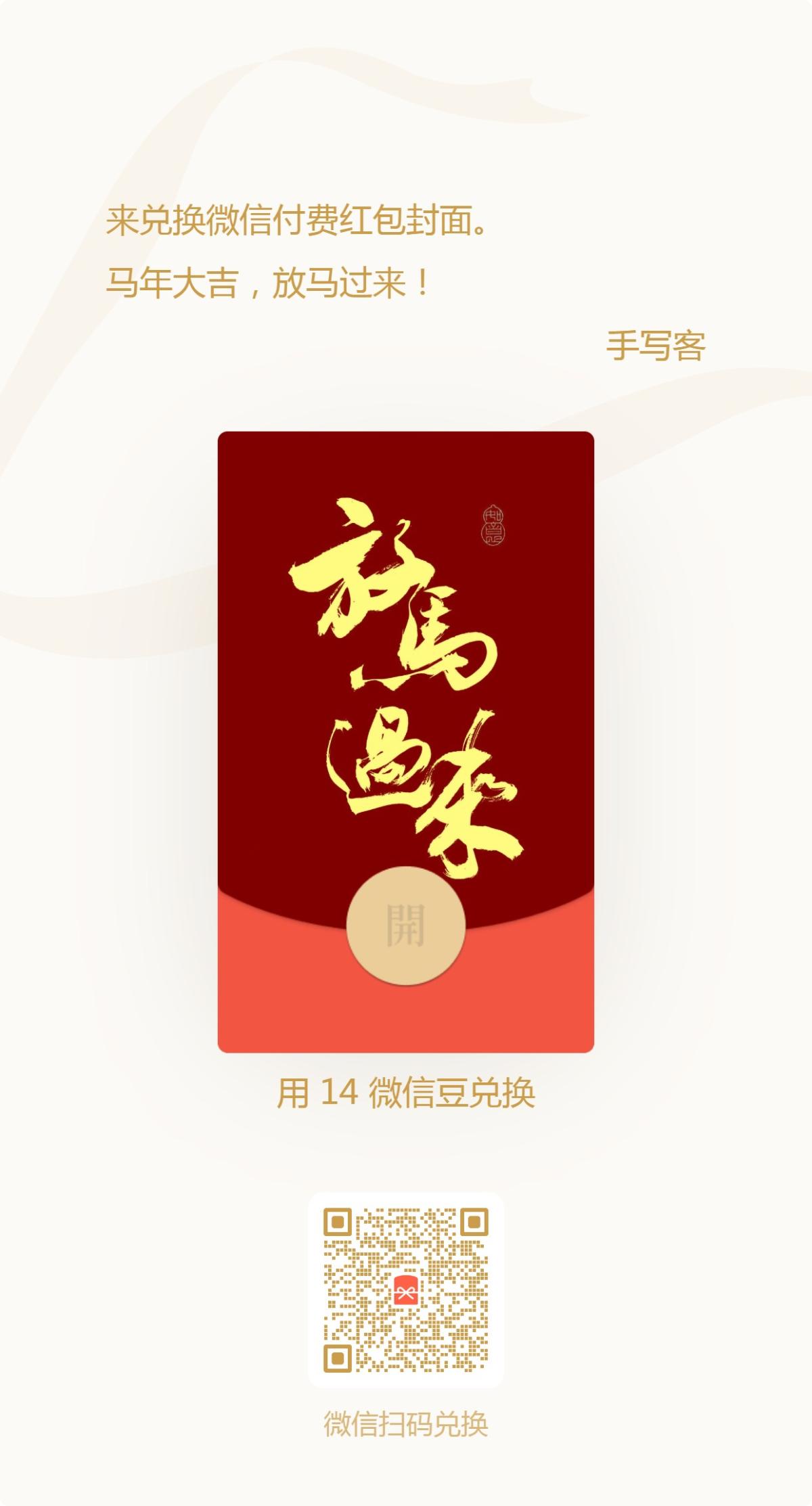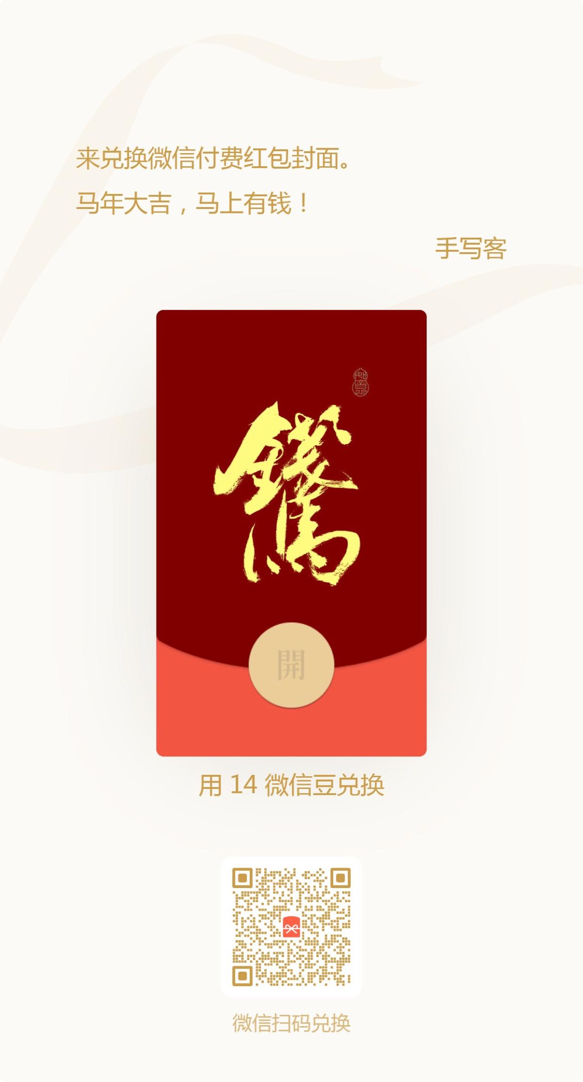 手写马年吉语红包封面